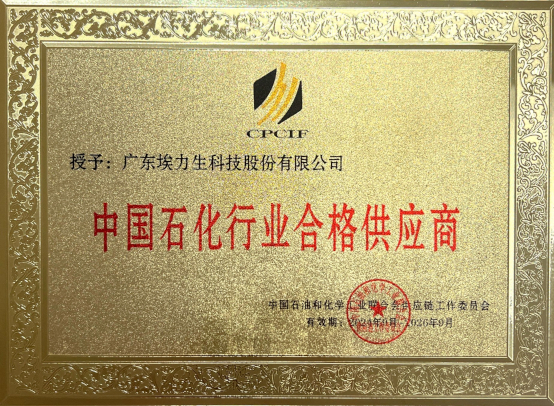 埃力生入选中国石油和化工行业合格供应商、可信服务商